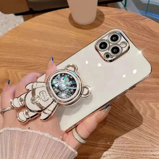 3D Quicksand Bear Bracket Plating Case For iPhone 15